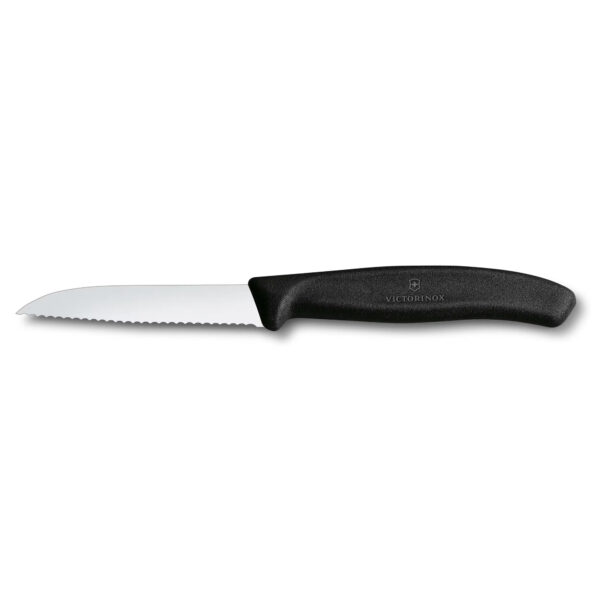 8cm Kitchen Knife Serrated Pointed Black Handle Swiss Classic Victorinox