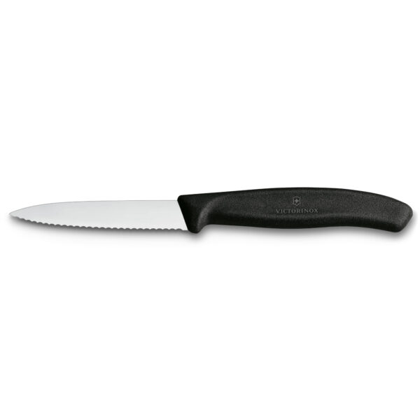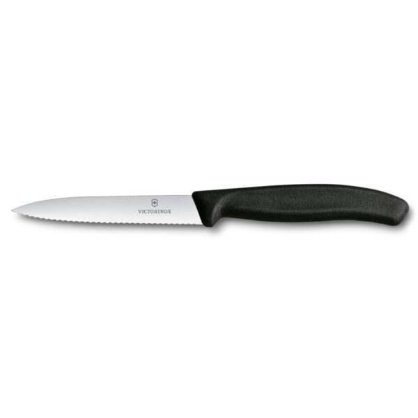 10cm Kitchen Knife Serrated Pointed Black Handle Swiss Classic Victorinox