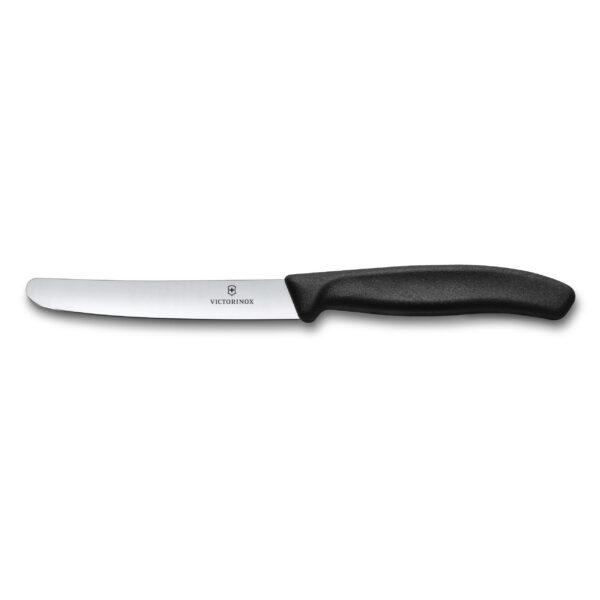 11cm Kitchen Knife Serrated Round Black Handle Swiss Classic Victorinox