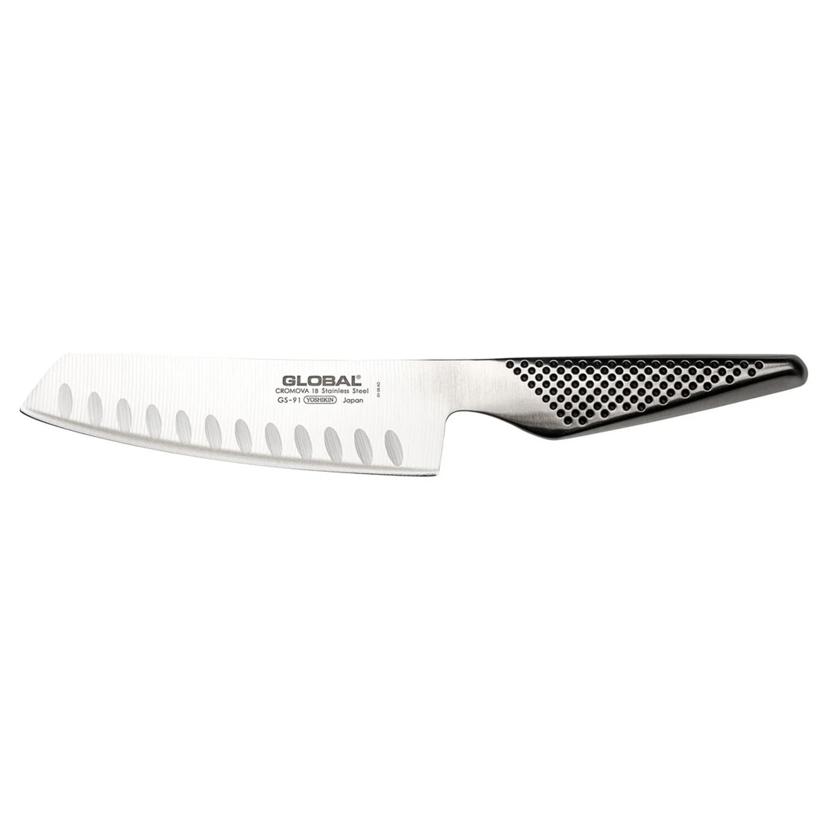 The GS-91 Global 14cm Nakiri Knife belongs to the Classic GSF series and features grooves for easy and clean cutting of vegetables. Its monolithic design ensures perfect balance and full control for professional and home use.