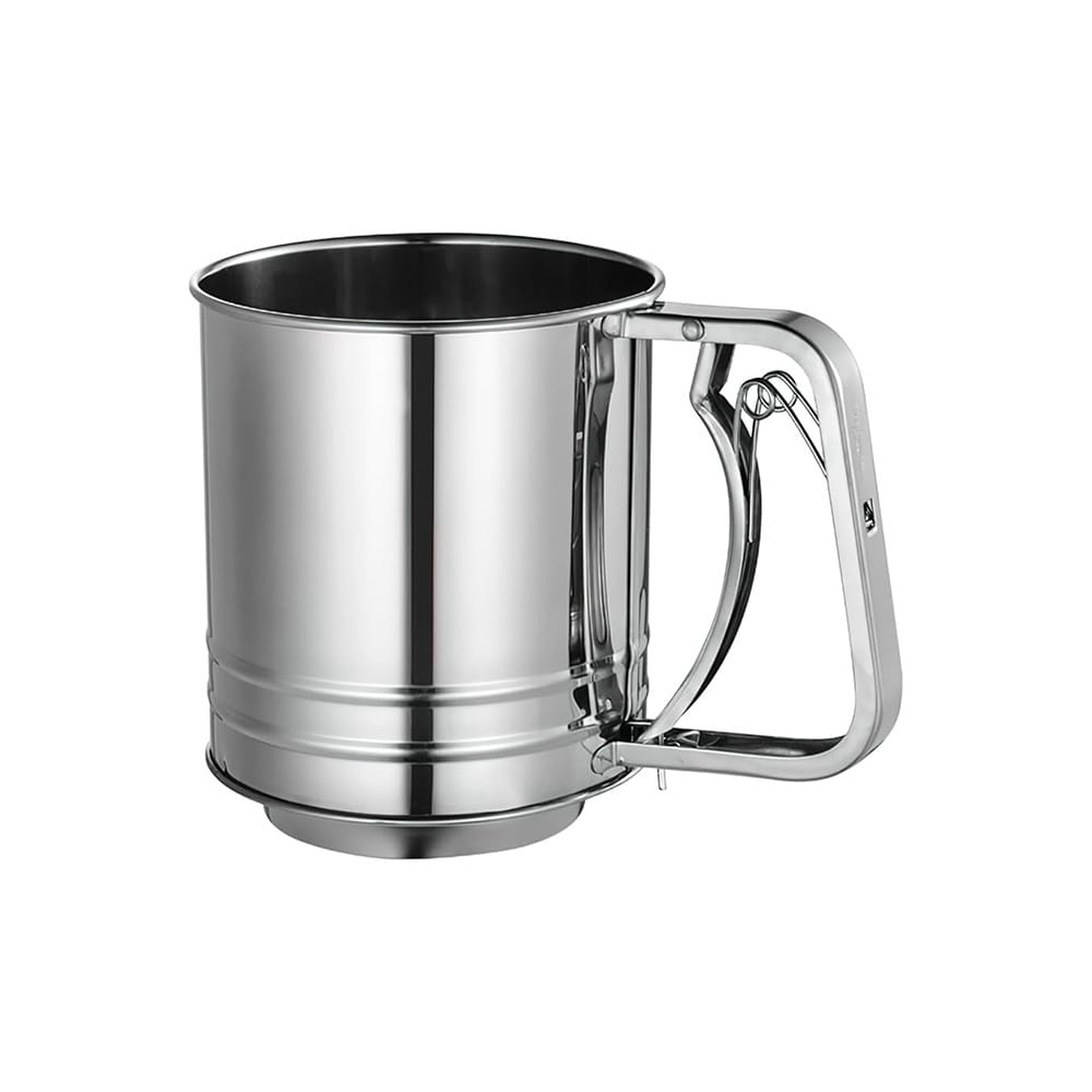 The stainless steel hand sieve for flour/icing sugar LH01 is ideal for fine and even sifting of flour, icing sugar, and cocoa in pastry shops, bakeries, and professional kitchens. The stainless steel construction with a fine perforated surface ensures smooth material flow without clogging, while offering durability for daily use and easy cleaning.