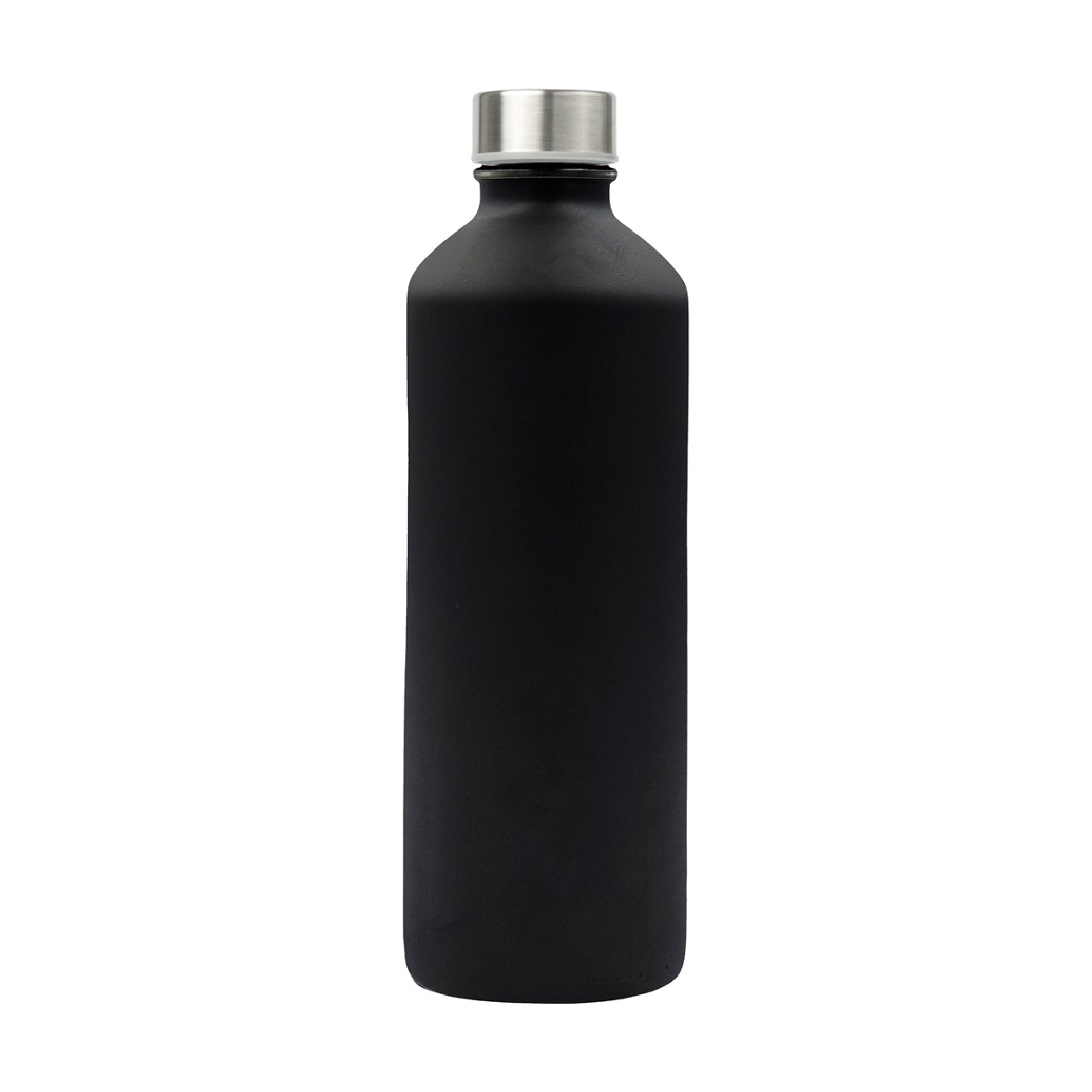 Black Glass Bottle 1lt With Stainless Steel Lid